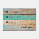 The design features the words "Keys, Phone, Wallet " for the forgetful person in your life. Personalised at the bottom with a name. Makes the perfect housewarming gift.
