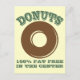 Who doesn't like doughnuts? You can announce your healthy eating to the world and let others know that a doughnut is 100% fat free in the middle! This funny food postcard is sure to give yourself and others a laugh! Spread a bit of humour with a humourous joke on a card with a classy modern design!