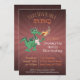 Invitation for BBQ birthday party, with a cute cartoon style dragon heating up a hot dog by breathing on it. On a matte dark red background with rays. The text can be changed for the occasion - you can have it for celebrating a 30th birthday party or 50th, or simply just have a neighbourhood garden party.