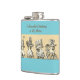 Well made flask, a little better than I had expected. Flask came in clear plastic box which gave it a nice presentation when I took it out of the zazzle packaging. Image is not printed on flask but on sticker. Don't know how this will hold up I haven't used it yet. This would make a Great gift! I plan to purchase more for friends! Cheers. I thought a little brighter than computer. Very crisp, writing wasn't