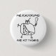 Hilarious "Me Play Drums, Me Hit Things" with caveman line drawing. Pin back buttons available in several round sizes and 2 x 2 square.