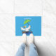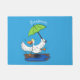 Funny duck with umbrella dancing cartoon doormat
