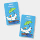 Funny duck with umbrella dancing cartoon ID badge