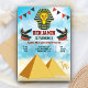 Amaze your guests with this cool Egyptian birthday party invite featuring a cute Egyptian king winking, with goddesses and beautiful pyramids against a bright sunny background. Simply add your event details on this easy-to-use template to make it a one-of-a-kind invitation. Flip the card over to reveal an elegant geometric pattern on the back of the card.