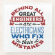 Funny electrician design for men or women whose job involves electricity or electric wiring. Artwork with sarcastic quote says: "Behind all great engineers are electricians who fix their mistakes." Perfect for electrical tradesman or line worker.