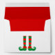 Funny elf feet Christmas envelopes for the Holiday. Personalise with your own address and greeting. Cute white postal envelopes with red inside liner. Great for Holiday party invites, greeting card post, winter events, Santa's workshop and more.