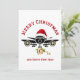 Funny Elf jumping on Aeroplane & Photo Custom Xmas Holiday Card