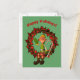 Whimsical male elf sitting on a poinsettia wreath holding a candy cane Christmas Holiday postcard. You can change or delete the greeting on the template. Click customise to add any text to the back of the card. Please visit my gallery to see more Christmas and Holiday cards and gifts. Thanks for stopping by Smilin' Eyes Treasures!