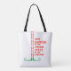 This fun and festive tote bag is perfect for all your holiday shopping, or for presenting gifts! A pair of very tall, thin elf legs--in red-and-white striped stockings and green curly-toed shoes--is next to the phrase: "What HAPPENS in the workshop STAYS in the workshop." The design and saying are on both sides of the bag. Also makes a great stocking stuffer!