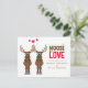Cute Whimsical Moose saying "it moose be love". This design features engagement cute whimsical fun funny invitations, perfect for wedding engaged couple celebration celebrate get together, a humour moose animal heart love, it moose be love quote, a creative unique cool typography font, trendy stylish modern light style, couple husband wife, red cartoon graphic illustration hearts, cute engagement budget postcard