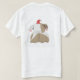 This funny Christmas Tee Shirt, features a portrait of an English Bulldog, wearing a festive hat, and Christmas tree ornament earrings.
