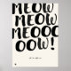 This "Funny English Cat Quote Art Print" is a delightful and humorous piece that captures the quirky charm of cats with a playful twist. The design features the word "MEOW" in various exaggerated sizes and shapes, mimicking the different tones and pitches of a cat's meow, followed by the witty phrase "said the English cat." The bold black text stands out against a simple, clean background, making it a striking and engaging artwork.
