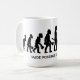 This funny and hilarious design features a common black and white silhouette graphic of Darwin's the evolution of man. The catchy graphic however has each figure carrying a coffee mug, with a monkey balancing one on its head. The caption says "Made possible by coffee". Personalise this with a new phrase or keep it the same. Enjoy your next cup of java, coffee, caffeine, tea, while enjoying this edgy and creative design. Makes a great gift for anyone and is available in multiple styles, colours, and sizes of cups and mugs.