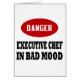 Funny chef t shirts and gifts with a red danger sign and the words executive chef in bad mood.