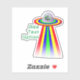 * Illustration of an alien a making funny face, while in his spaceship. Rainbow beams from below.