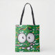 Funny face smiling colourful pattern green orange tote bag