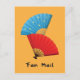 Fan Mail pun with Japanese paper fans in red and blue on an orange background.