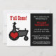 An eyecatching black, white and red birthday invitation suitable for both men or women who are farmers or love the country life. A cute icon style road sign graphic of a person wearing a wide brimmed cowboy hat driving a farming tractor with a large red heart inside the wheel. Several fully customizeable text fields allow you to personalise it with your own party and event details for any occasion. Shown as a milestone 40th birthday party invitation.