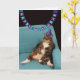 Funny Fat Cat in Purple Hat Happy Birthday Card