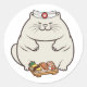 Funny fat cat is a sushi chef classic round sticker