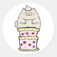 Funny fat cat jumping out of a cake classic round sticker