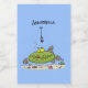 Funny fat hungry green fish fishing cartoon food label