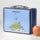 Funny fat hungry green fish fishing cartoon metal lunch box