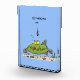 Funny fat hungry green fish fishing cartoon photo block