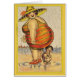 A great use for a fat lady -- what a scream! What better way to take refuge from the storm but under a fat lady's derrier! This beautiful vintage illustration was printed on a post card, next to the "busy person's correspondence card," which allowed you to quickly check off exactly what you've been doing on vacation, rather than having to take the time to write out your note by hand. Look through our store for more beautiful Vintage products.
