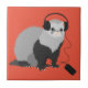 Customizable fun ferret tile for a music lover who also loves ferrets. This musical ferret design features a vector illustration of a cute fluffy ferret wearing big headphones and listening to its favorite songs on its own phone. This fun musical poster will also make a great gift for a musician who has a pet ferret.
