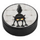Funny Fierce Black Cat Cartoon Hockey Puck