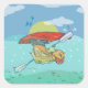 Funny fish kayaking square sticker