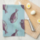 Funny fish kitchen towel with a pattern created from a digital illustration depicting one of these marine animals wearing fake eyelashes.