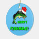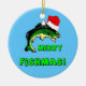 Merry Fishmas! Funny and hilarious jumping fish with santa hat wishing you a merry christmas the only way he knows how. Humourous fishing Christmas gifts ornaments to decorate the holiday Christmas tree for the fisherman.