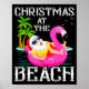 Funny Flamingo Float Santa Claus Christmas At The Poster