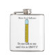 Well made flask, a little better than I had expected. Flask came in clear plastic box which gave it a nice presentation when I took it out of the zazzle packaging. Image is not printed on flask but on sticker. Don't know how this will hold up I haven't used it yet. This would make a Great gift! I plan to purchase more for friends! Cheers. I thought a little brighter than computer. Very crisp, writing wasn't