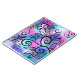 A funny little bird, lovely floral elements, and a little heart on a pink, purple and turquoise background.