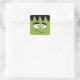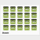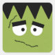A funny Halloween Frankenstein face sticker by fj greetings. There are stitches on the left eye and the mouth is also stitched. The eyes are funny and cross eyed.