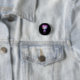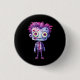Button with a cute illustration. Frankenstein monster with pink and purple hair and a dapper coat and tie.