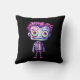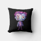 A pillow with a cute illustration. Frankenstein monster with pink and purple hair and a dapper suit and tie.