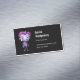 Magnetic business card with a cute illustration. Frankenstein monster with pink and purple hair and a dapper coat and tie.