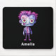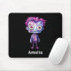 Mouse pad with a cute illustration. Frankenstein monster with pink and purple hair and a dapper coat and tie.