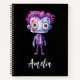 Spiral notebook with a cute illustration. Frankenstein monster with pink and purple hair and a dapper suit and tie.