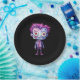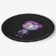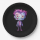 Paper plates with a cute illustration. Frankenstein monster with pink and purple hair and a dapper suit and tie.