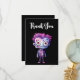 Thank you card with a cute illustration. Frankenstein monster with pink and purple hair and a dapper suit and tie.