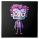 Ceramic tile with a cute illustration. Frankenstein monster with pink and purple hair and a dapper coat and tie.