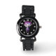 Watch with a cute illustration. Frankenstein monster with pink and purple hair and a dapper suit and tie.