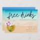 Funny "Free Drinks (and we're getting married)" beach with coconut cocktail design wedding save the date for your beach wedding. A casual save the date that your friends and family will love and that will set the tone for the party of the year - your wedding!