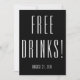 Funny black and white bridal shower invitation Free Drinks on the front and Oh, and By the Way, There's a Bridal Shower! on the back. Personalise with name in pretty script and shower details to make sure people are ready to celebrate with you! See coordinating items in our shop, Enchanted Finch.