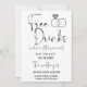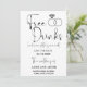 Black and white typography funny "Free drinks (and we're getting married) save the dates. Add your details to the front and a photo to the back.